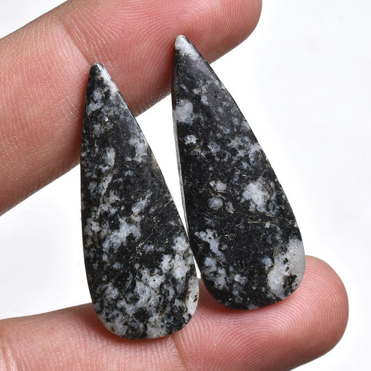 Snowflake Black Zebra Jasper Matched Pair - Pear Shape Jasper for Earring