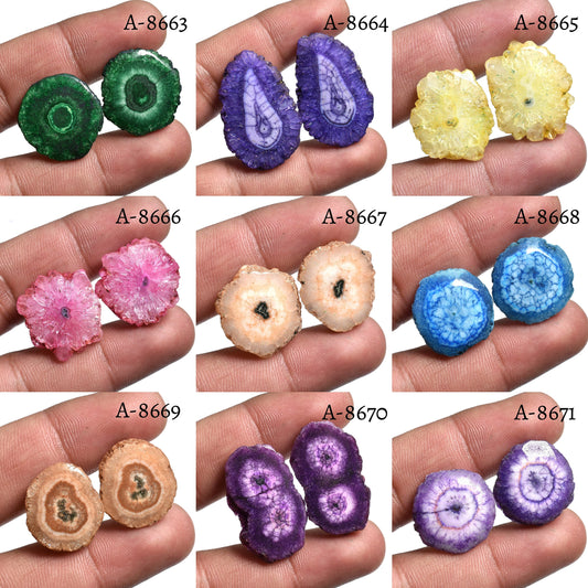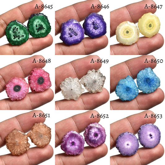 DIY Solar Quartz Pairs - Pink, Yellow, Brown Stalactite Slices for Earring Pair