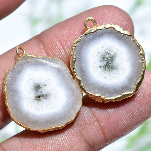 Solar Quartz Gold Electroplated Stalactite Slice | Druzy Earring Pair for DIY Jewelry