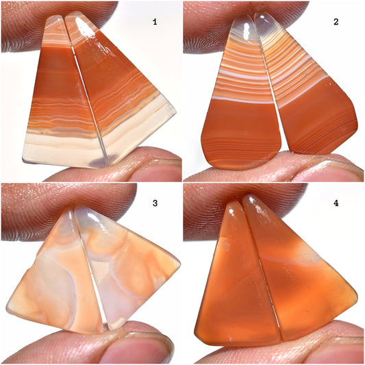 Unique 100% Natural Orange Banded Agate Cabochon Pair - Fancy Cut Slice Gems