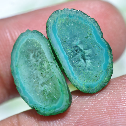 Solar Quartz Slice Pair, Loose Stone Pair, Green Geode Matching Pair
