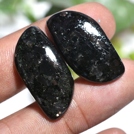 Beautiful Nuummite Gemstone Pair – Fancy Shape Black With Golden Cabochons (12x30x3mm,/40ct)