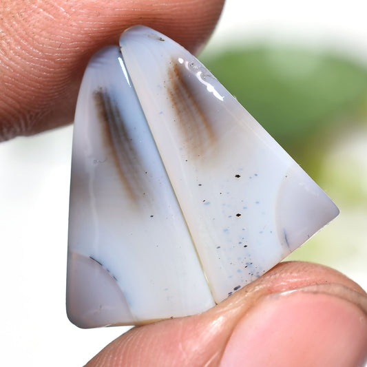 Natural Montana Agate Pair – Pear Shaped Matching Cabochon Gemstones (14x24x4mm,/24ct)