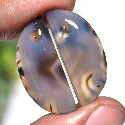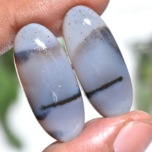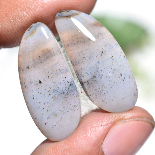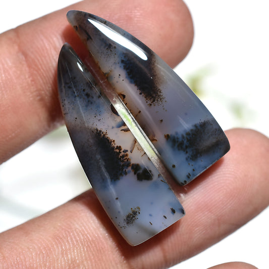 Natural Montana Agate Gemstone Pair – Fancy Shape Matching Cabochons Duo (10x26x3mm,/34ct)