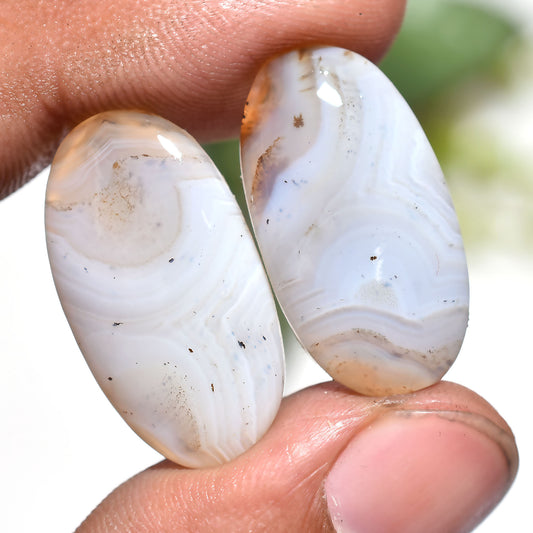 Attractive Montana Agate Gemstone Pair – Natural Oval Shaped Matching Cabochon Set (13x30x3mm,/44ct)
