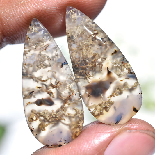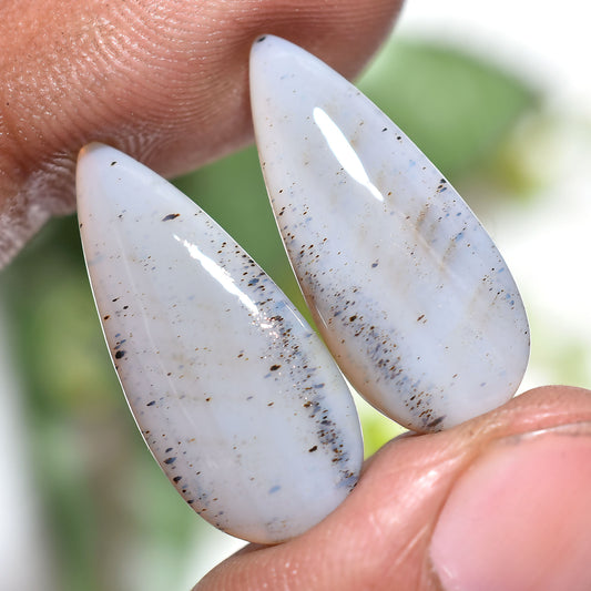 Natural Montana Agate Pair – Teardrop Shaped Matching Cabochon Gemstones (10x28x4mm,/33ct)
