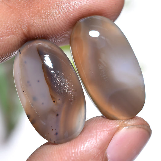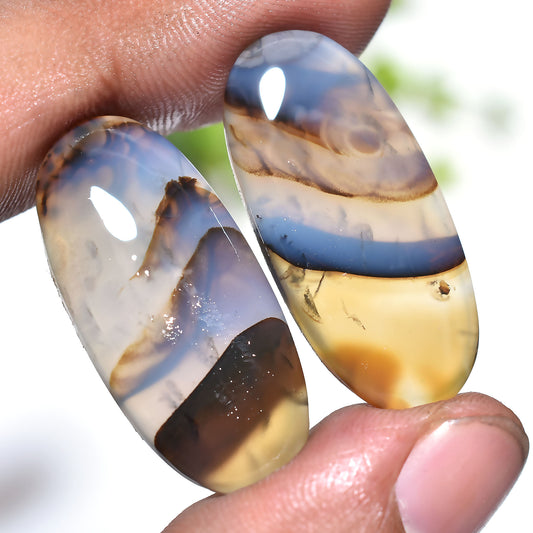 Fancy Shape Montana Agate Gemstone Pair – Natural Matching Cabochons (10x26x3mm,/30ct)