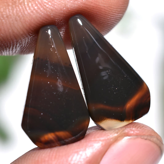 Natural Brown Montana Agate Earrings Pair – Fancy Shape Matching Gemstone Duo (15x28x3mm,/33ct)