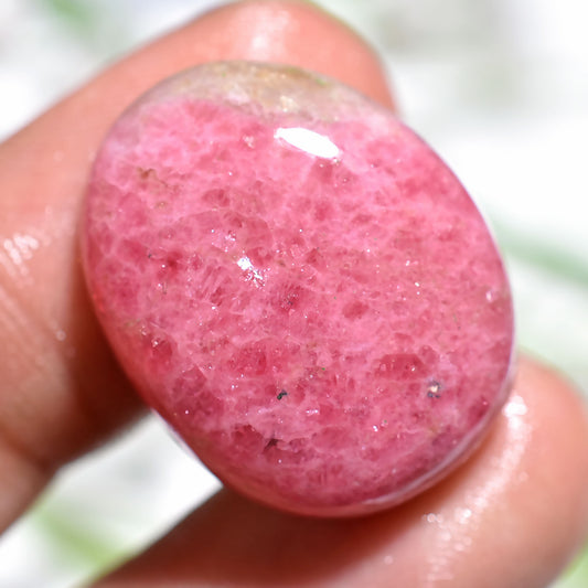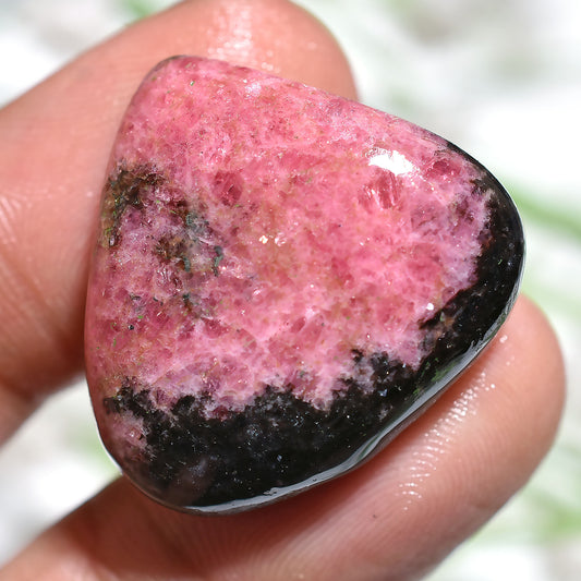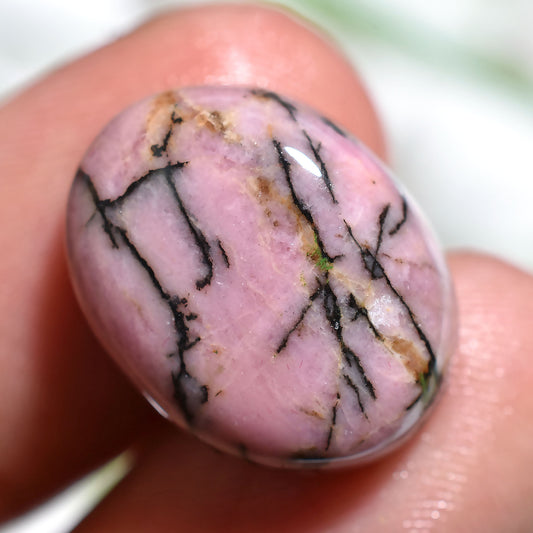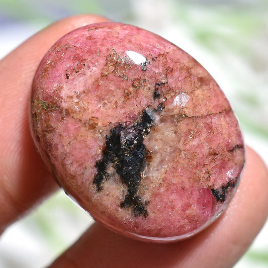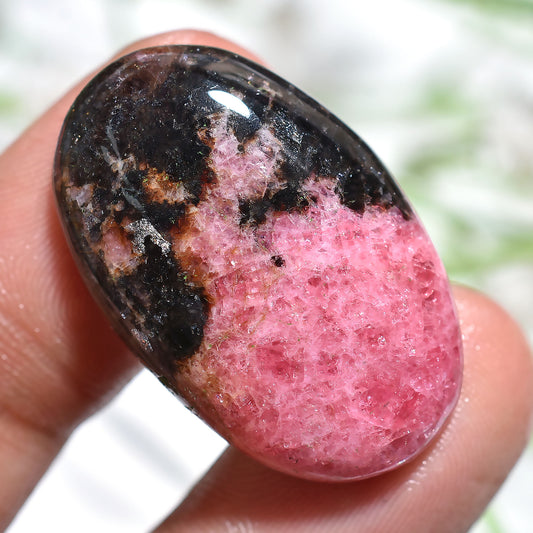 Handcrafted Rhodochrosite Gemstone Pair – Natural Pink & Black Oval Cabochons 18x24x5mm,/37ct