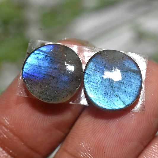 Natural Labradorite Round Gemstone Pair | Blue Flash Cabochons for Jewelry
