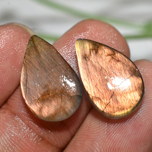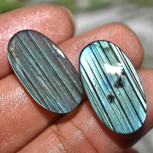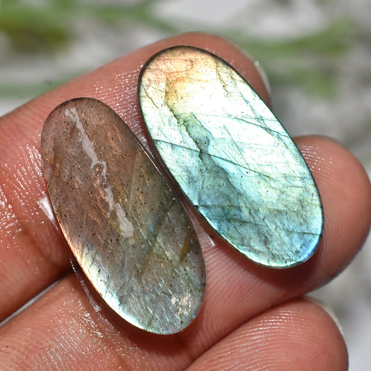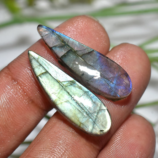Labradorite Fancy Cabochon Pair | Rainbow Flash Crystal Stones(8x28x3mm,/19ct)