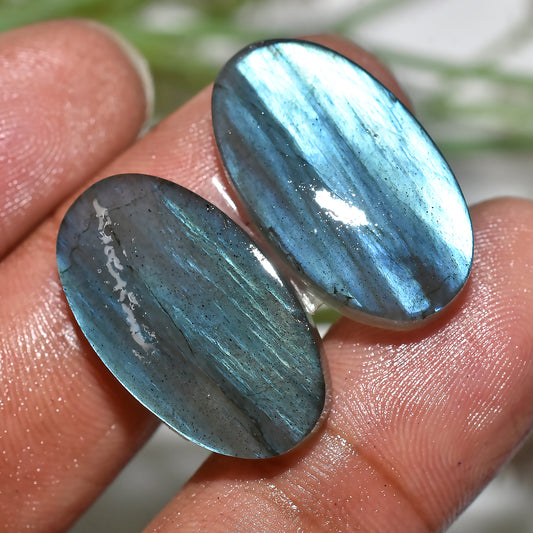 Labradorite Matched Pair | Blue Flash Cabochons for Earrings(12x23x3mm,/28ct)