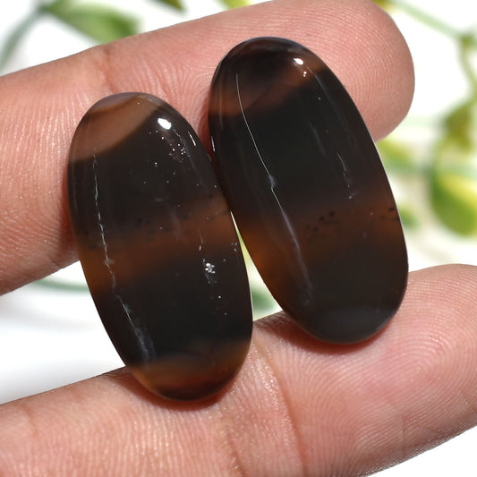 Brown Montana Agate Gemstone Pair – Natural Oval Shaped Matching Cabochon Set (12x24x4mm,/32ct)
