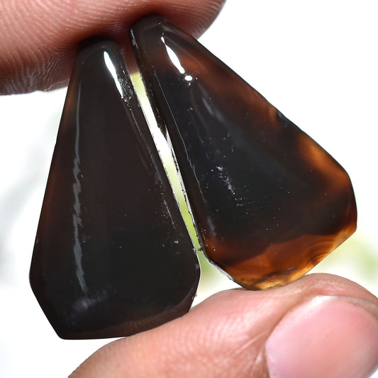 Fancy Shape Brown Montana Agate Matching Pair – Natural Gemstone Duo (11x20x3mm,/17ct)