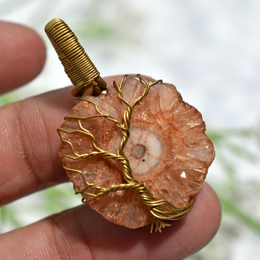 PINK Solar Quartz Pendant – Wire Wrapped Healing Gemstone Necklace(27x45x6mm,/62ct)