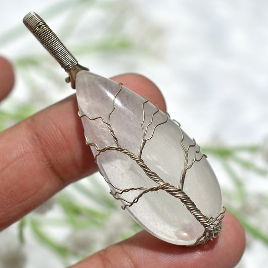 Genuine Rose Quartz Pendant – Handcrafted Wire Wrap Gemstone for Jewelry (18x55x6mm,/62ct)