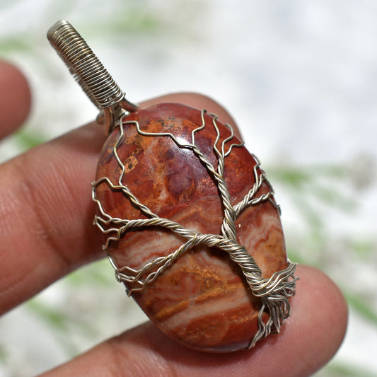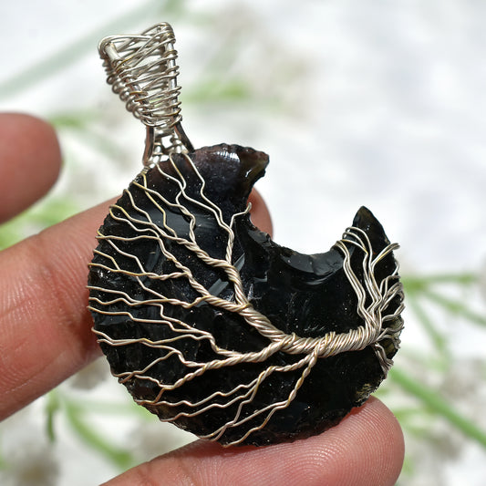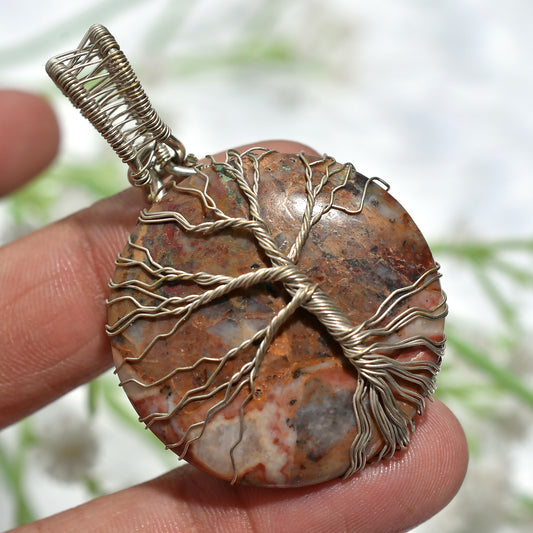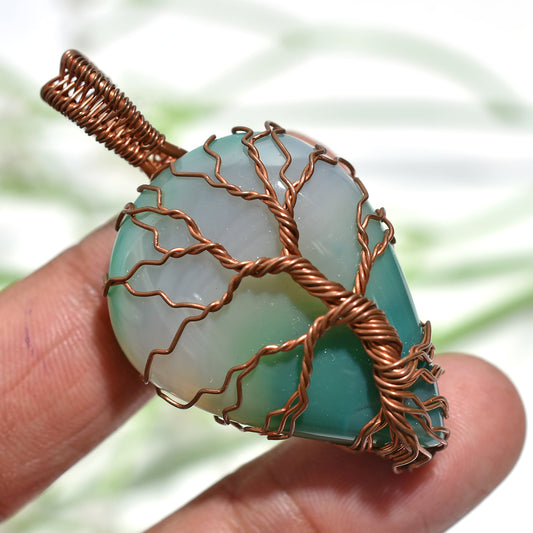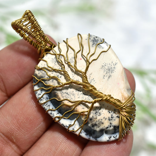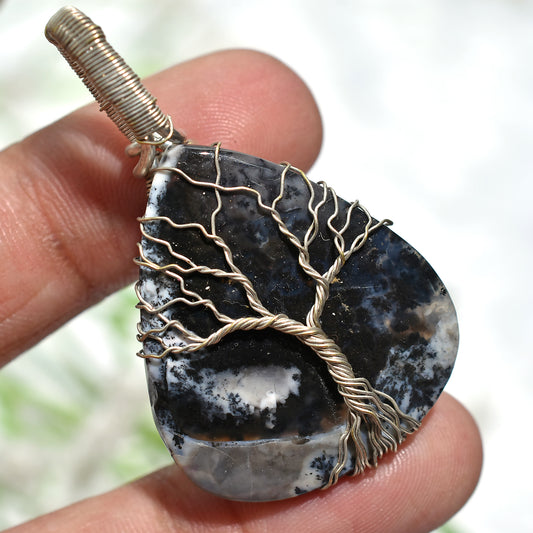 Natural Dendritic Agate Pendant – Tree of Life Wire Wrapped Gemstone Jewelry(28x45x5mm,/41ct)