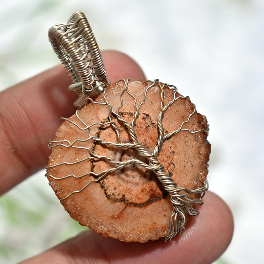 Boho Tree of Life Pendant – Purple Agate Stone Energy Healing Necklace(38x45x5mm,/81ct)