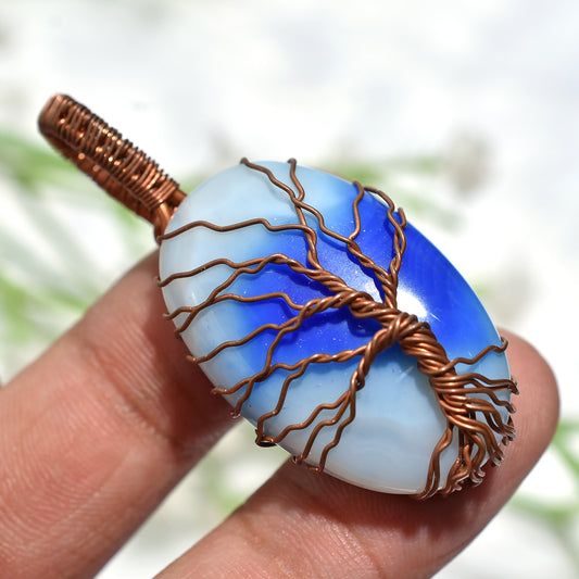 Glowing Blue Labradorite Tree of Life Pendant – Copper Wire Wrapped Stone Jewelry( 27x73x8mm,/84ct)
