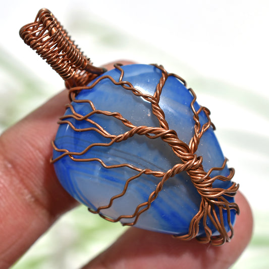 Attractive Blue Botswana Agate Pendant – Copper Wire Wrap Stone Necklace(25x43x7mm,/52ct)