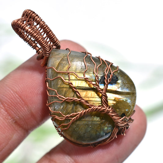 Magical Labradorite Wire Wrapped Pendant – Tree of Life Gemstone Necklace ( 23x41x6mm,/44ct)