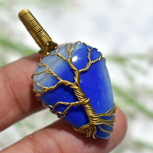 Ocean Blue Agate Pendant – Spiritual Energy Healing Wire Wrap Stone Necklace (20x45x5mm,/41ct)