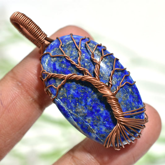 Unique Lapis Lazuli Tree of Life Pendant – Artisan Handmade Gemstone Jewelry(22x52x10mm,/78ct)