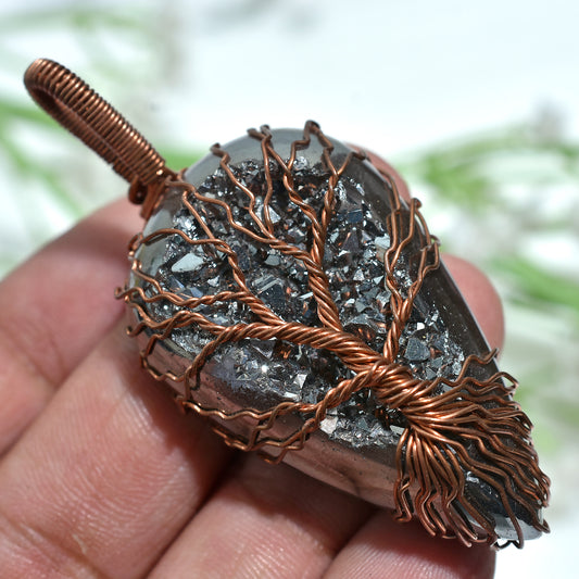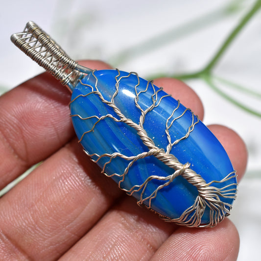 Spiritual Blue Agate Gemstone β Wire Wrapped Tree of Life Energy Pendant (17x55x8mm,/62ct)