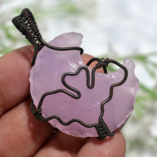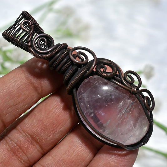 Unique Rose Quartz Gemstone Pendant β Oxidise Copper Wire Wrapped Cabochon(30x60x7mm,/119ct)