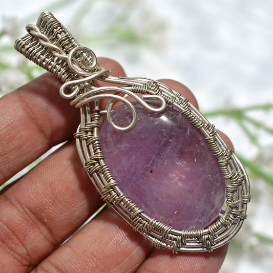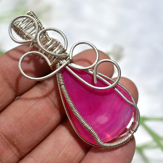 Magical Pink Agate Stone Pendant β Handwoven Silver Wire Wrapped Healing Crystal(22x55x5mm,/48ct)