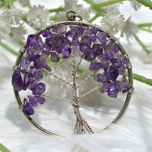 Gorgeous Amethyst Pendant - Silver Wire Wrapped Tree of Life Designer Gemstone Jewelry (41x49x5mm,/40ct)