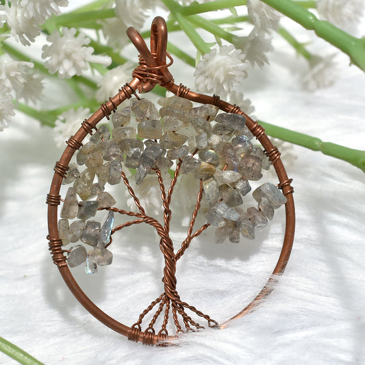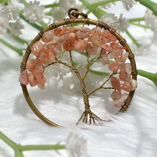 Tree of Life Pendant with Sunstone Chips β Spiritual Fashion Jewelry(43x50x5mm,/42ct)