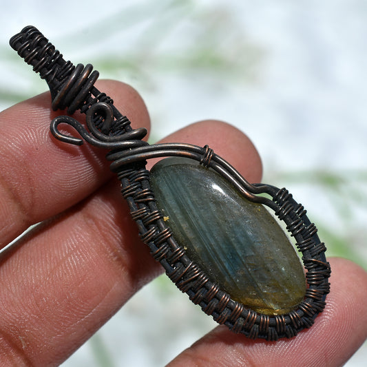 Artisan Handmade Uncut Labradorite Pendant - Copper Wire Wrapped Gemstone Necklace( 40x53x5mm,/43ct)