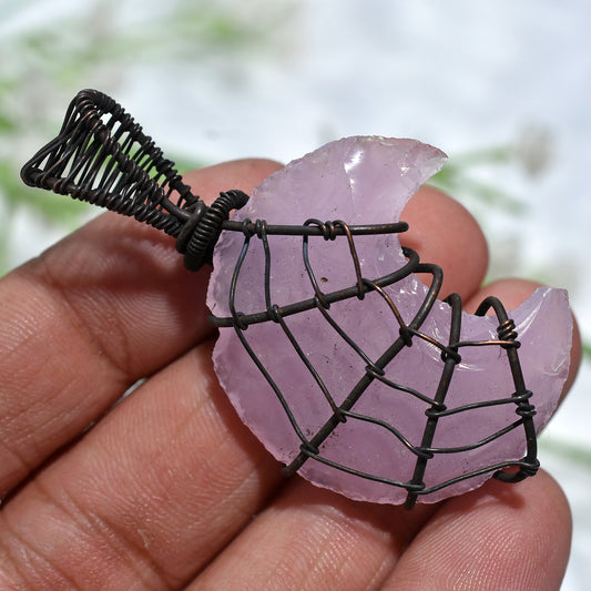 Spider Web!! Wire Wrapped Rose Quartz- Natural Wholesale Gemstone Jewellery(22x50x5mm,/50ct)