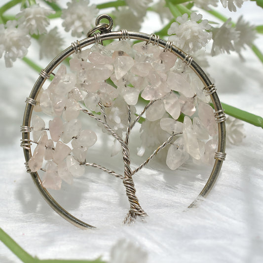 Handcrafted Rose Quartz Tree of Life Pendant β Metaphysical Gemstone Jewelry (40x49x5mm,/41ct)