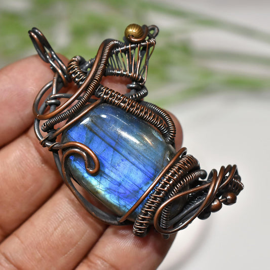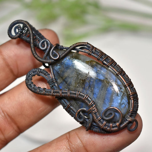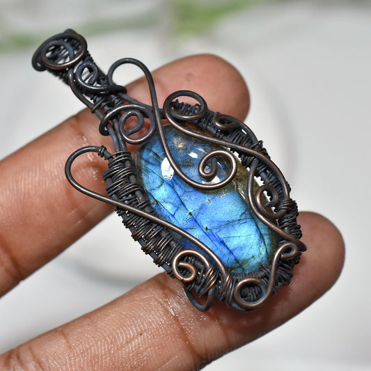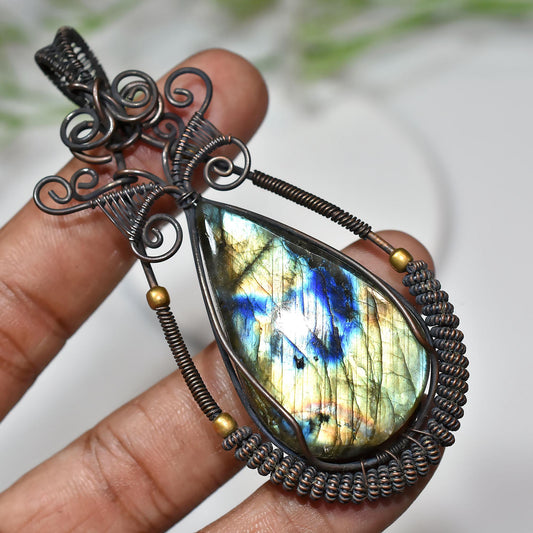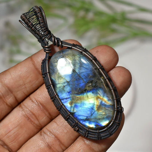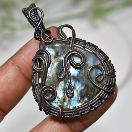 Labradorite Oval Shape Copper Pendant – Handmade Wire Wrapped Gemstone Jewelry
