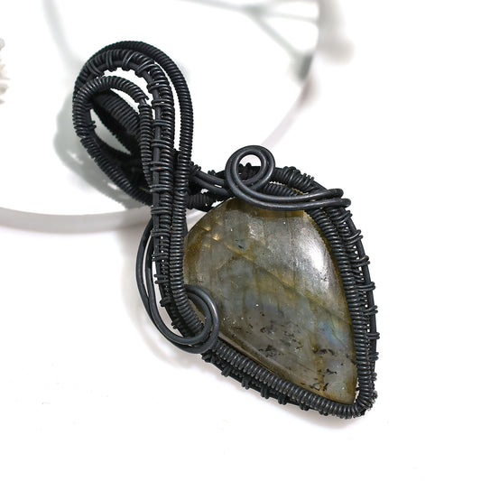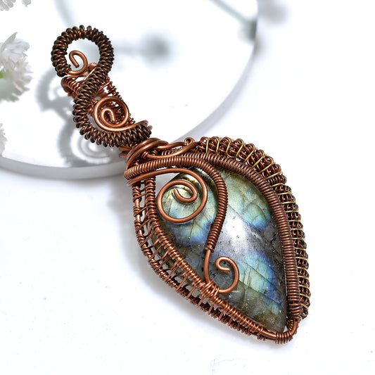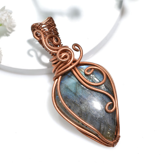 Wholesale Flashy Labradorite Pendant – Copper Wire Wrapped Natural Gemstone Jewelry