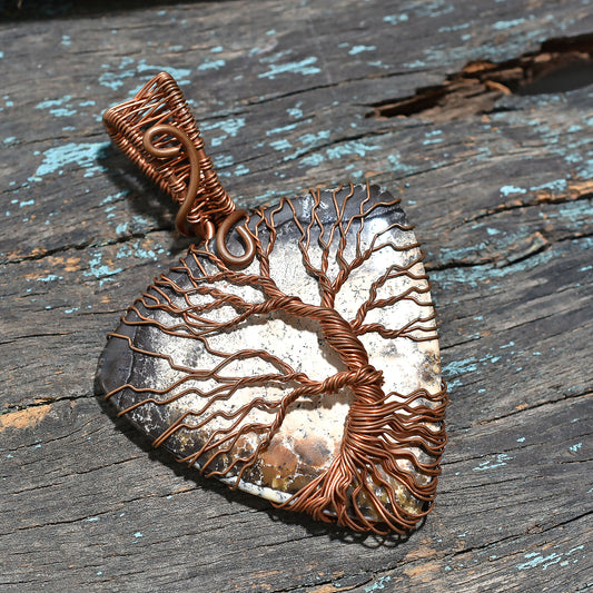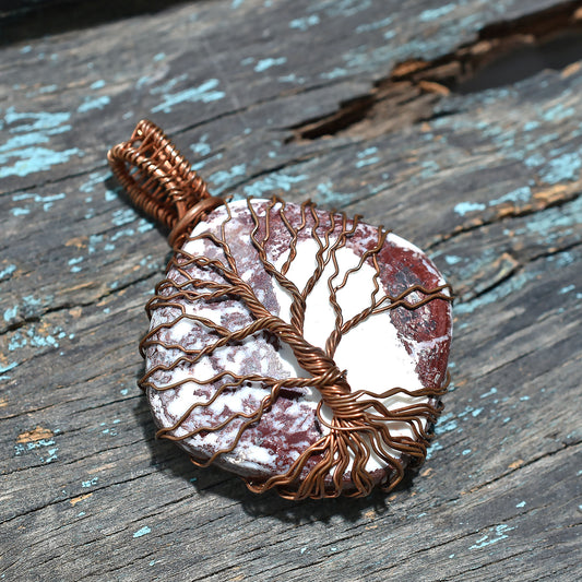 Amazing Wild Horse Jasper Tree of Life Pendant – Copper Wire Wrapped Handmade Gemstone Jewelry
