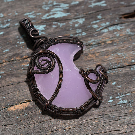 Rose Quartz Crescent Moon Gemstone Pendant – Oxidized Copper Antique Wire Wrapped Handmade Necklace