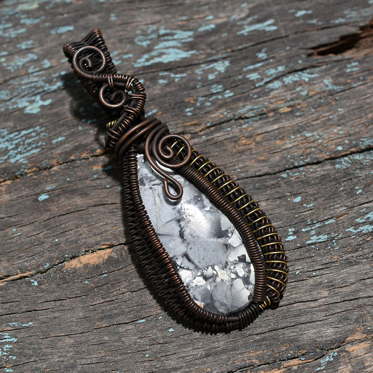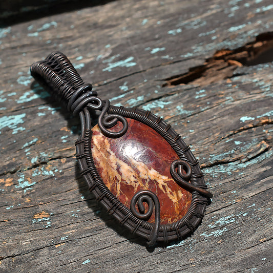 Wholesale Coconut Jasper Pendant – Oxidized Copper Wire Wrapped Gemstone Handcrafted Necklace