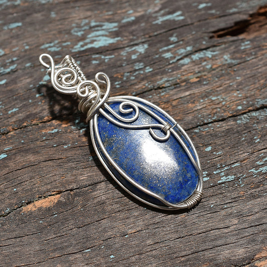 Elegant Lapis Lazuli Pendant – Artisan Silver Wire Wrapped Necklace Wholesale Gemstone