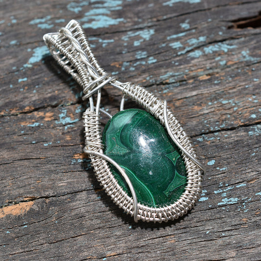 Stunning Malachite Silver Wire Wrapped Gemstone Pendant – Wholesale Artisan Handcrafted Design Jewelry