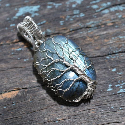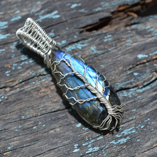 Handcrafted Labradorite Gemstone Pendant – Silver Wire Wrapped With Tree Symbol Wholesale Jewelry