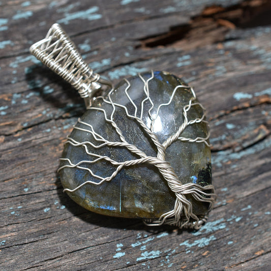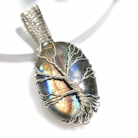 Handmade Flashy Labradorite Pendant – Tree of Life Design Silver Wire Wrapped Wholesale Gemstone