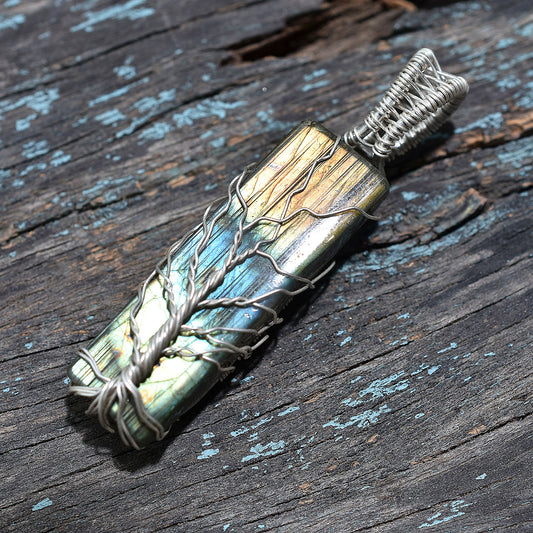 Iridescent Labradorite Tree of Life Gemstone Pendant – Silver Wire Wrapped Handmade Wholesale Jewelry