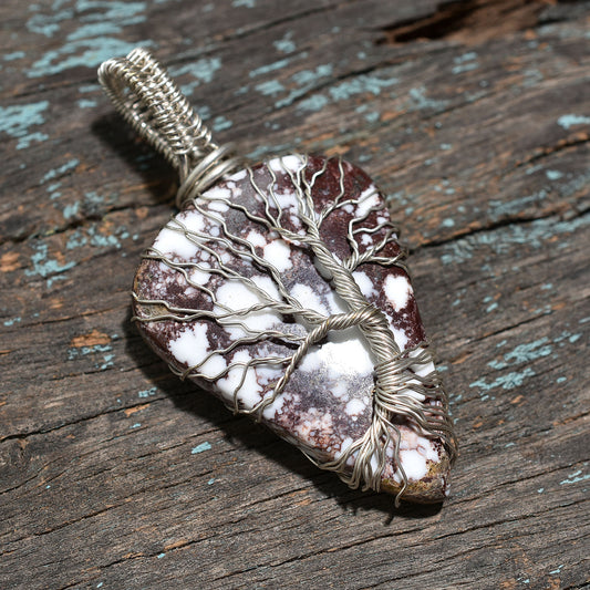 Wild Horse Jasper Tree of Life Pendant – Silver Wire Wrapped Handmade Gemstone Jewelry