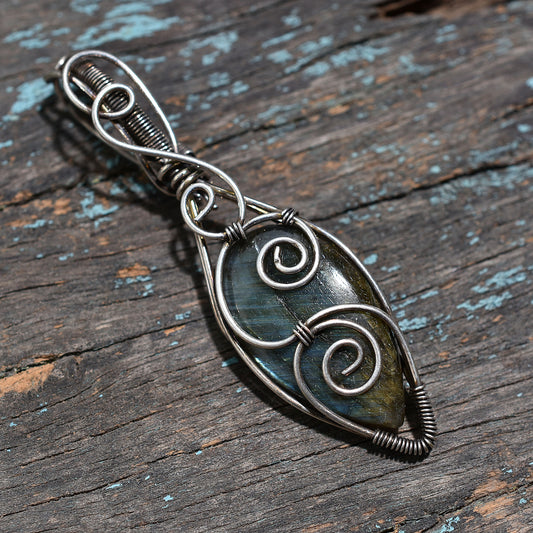 Handmade Labradorite Necklace – Silver Wire Wrapped Swirl Design Wholesale Gemstone Pendant