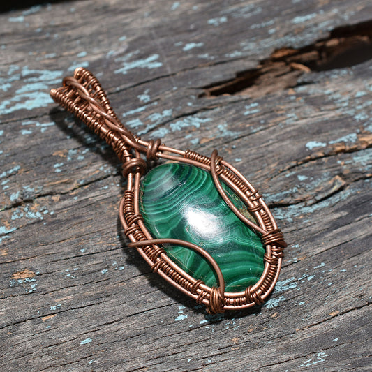 Genuine Malachite Copper Wire Wrapped Pendant – Wholesale Artisan Handmade Design Gemstone Jewelry
