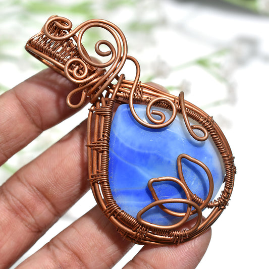 Handcrafted Blue Botswana Agate Copper Wire Wrapped Pendant - Wholesale Necklace Artisan Jewelry