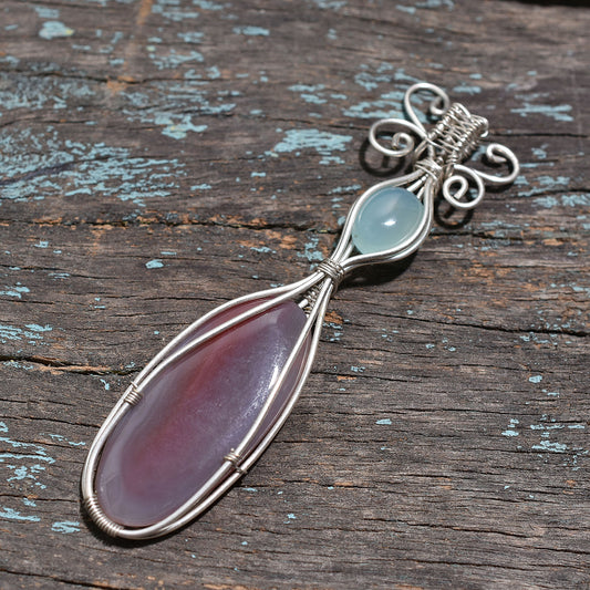 Artisan Red Botswana & Amazonite Pendant – Silver Wire Wrapped Handmade Wholesale Gemstone Jewelry